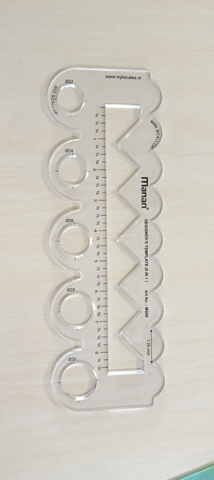 5 in 1 Scale { small Scallop, Big Scallop, Triangle,Ā Round ,Straight Lines can Draw using This scale }